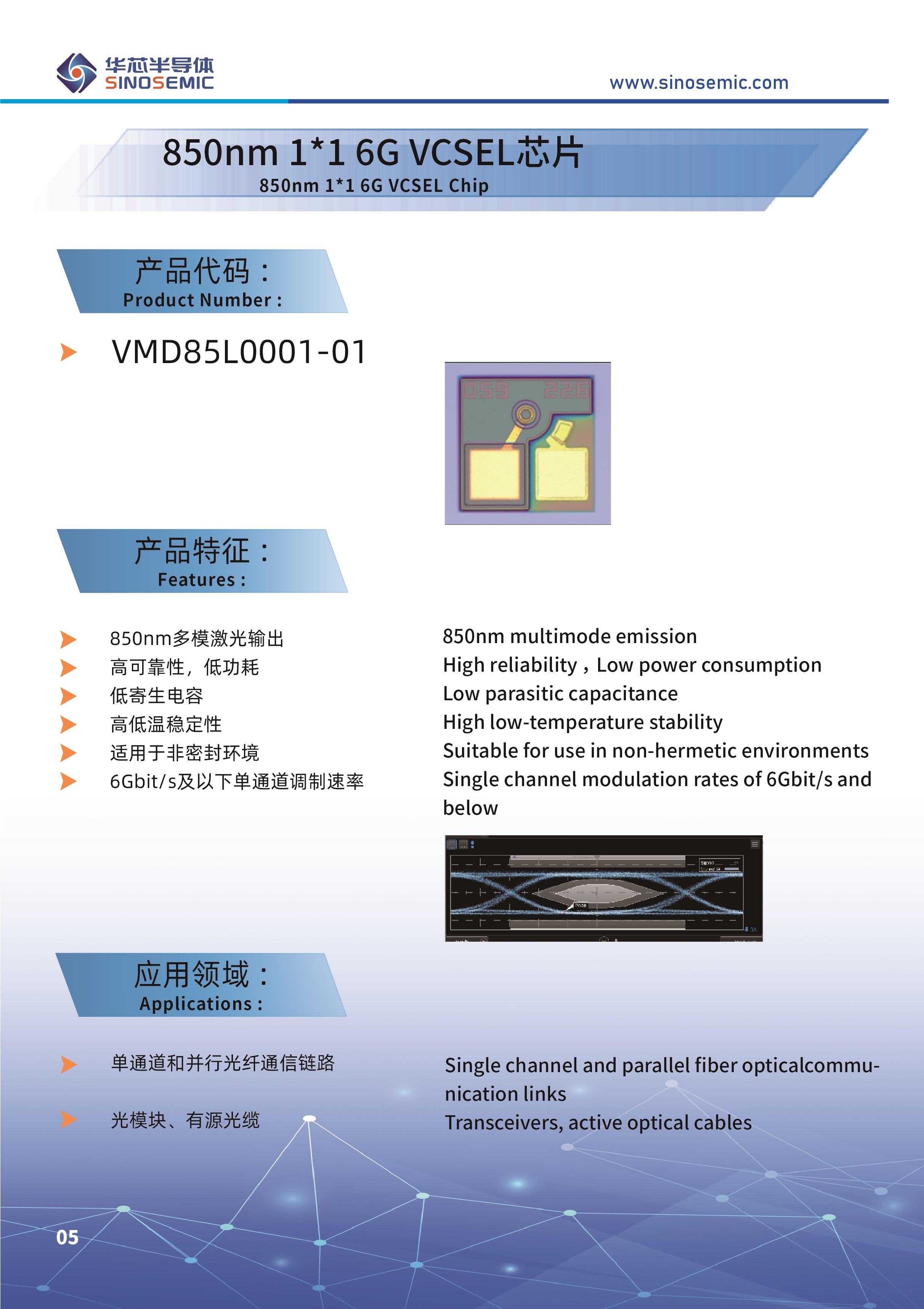 850nm 1*1 6G VCSEL芯片
