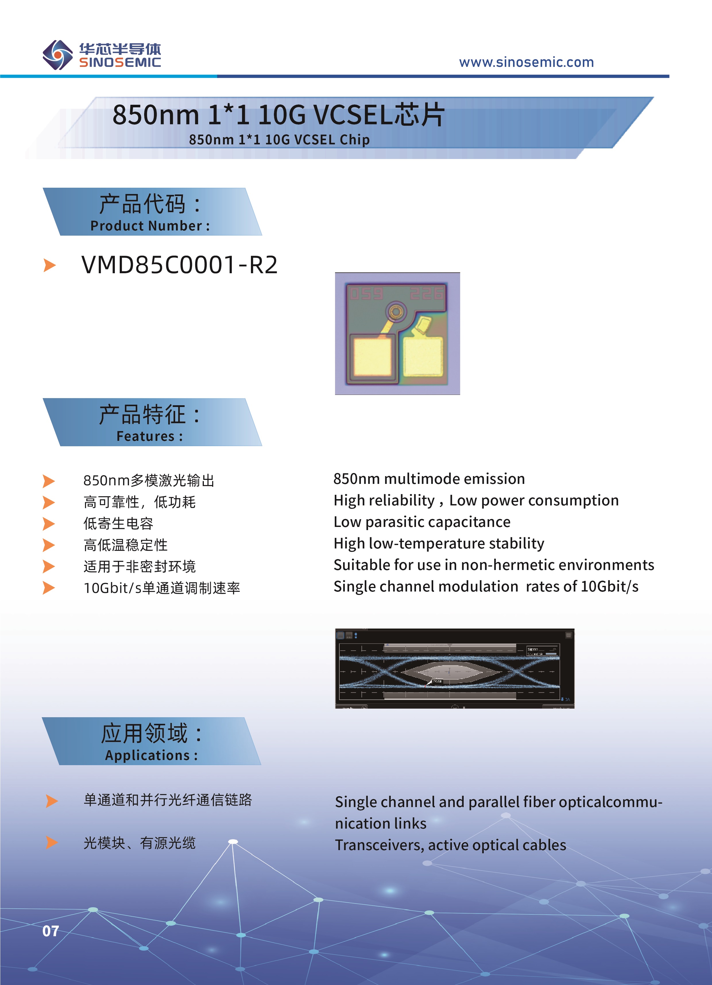 850nm 1*1 10G VCSEL芯片