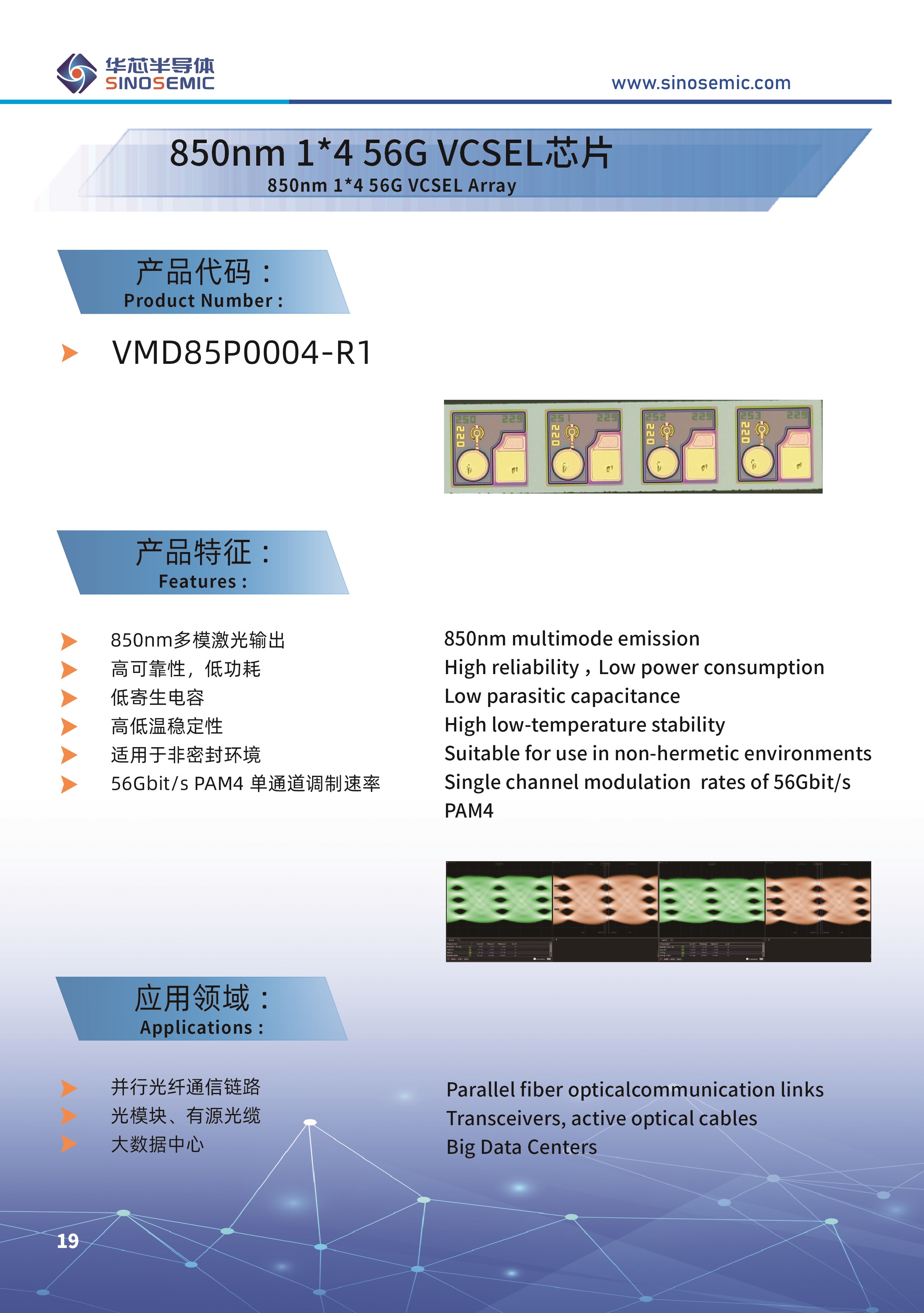 850nm 1*4 56G VCSEL芯片