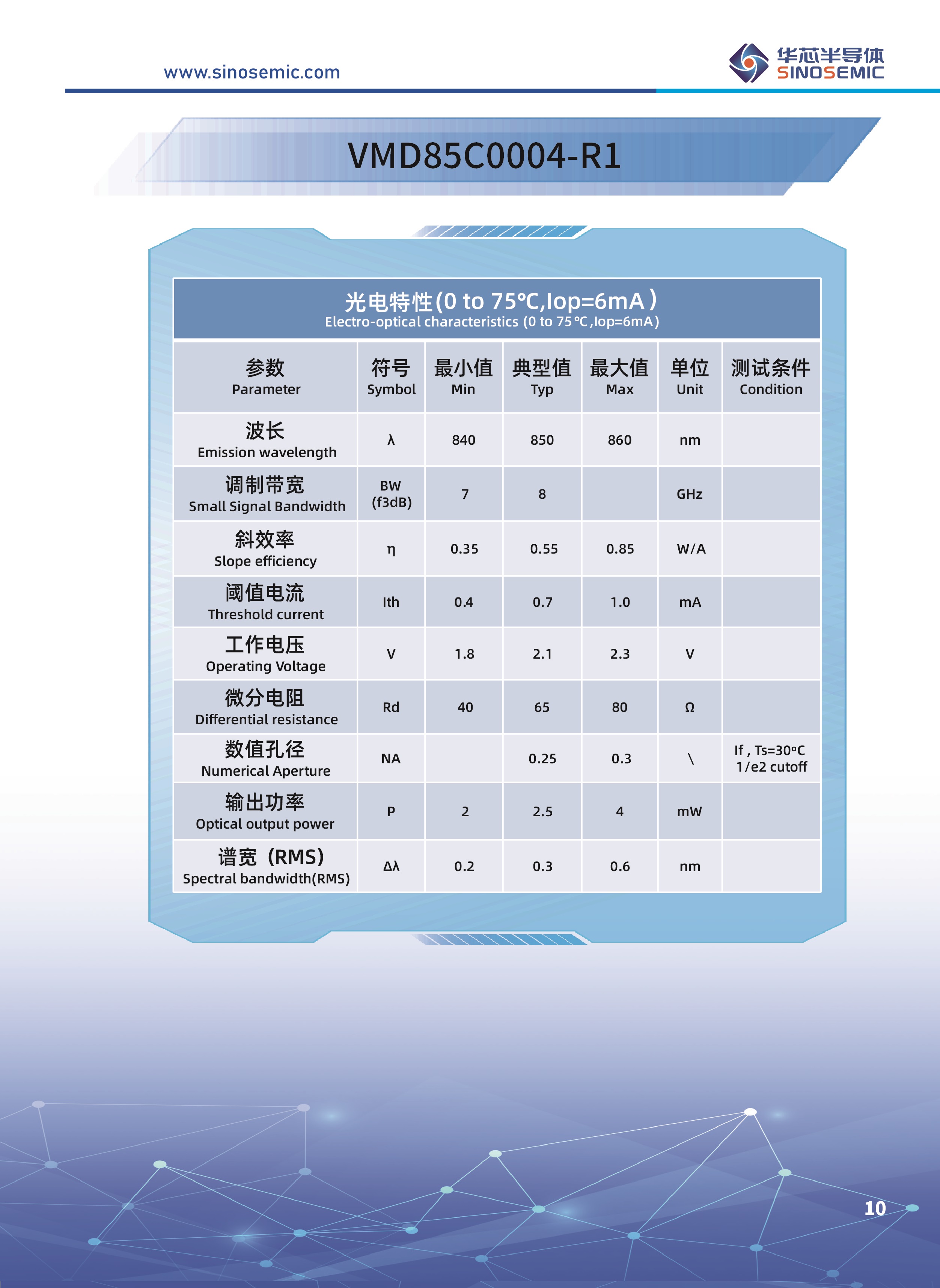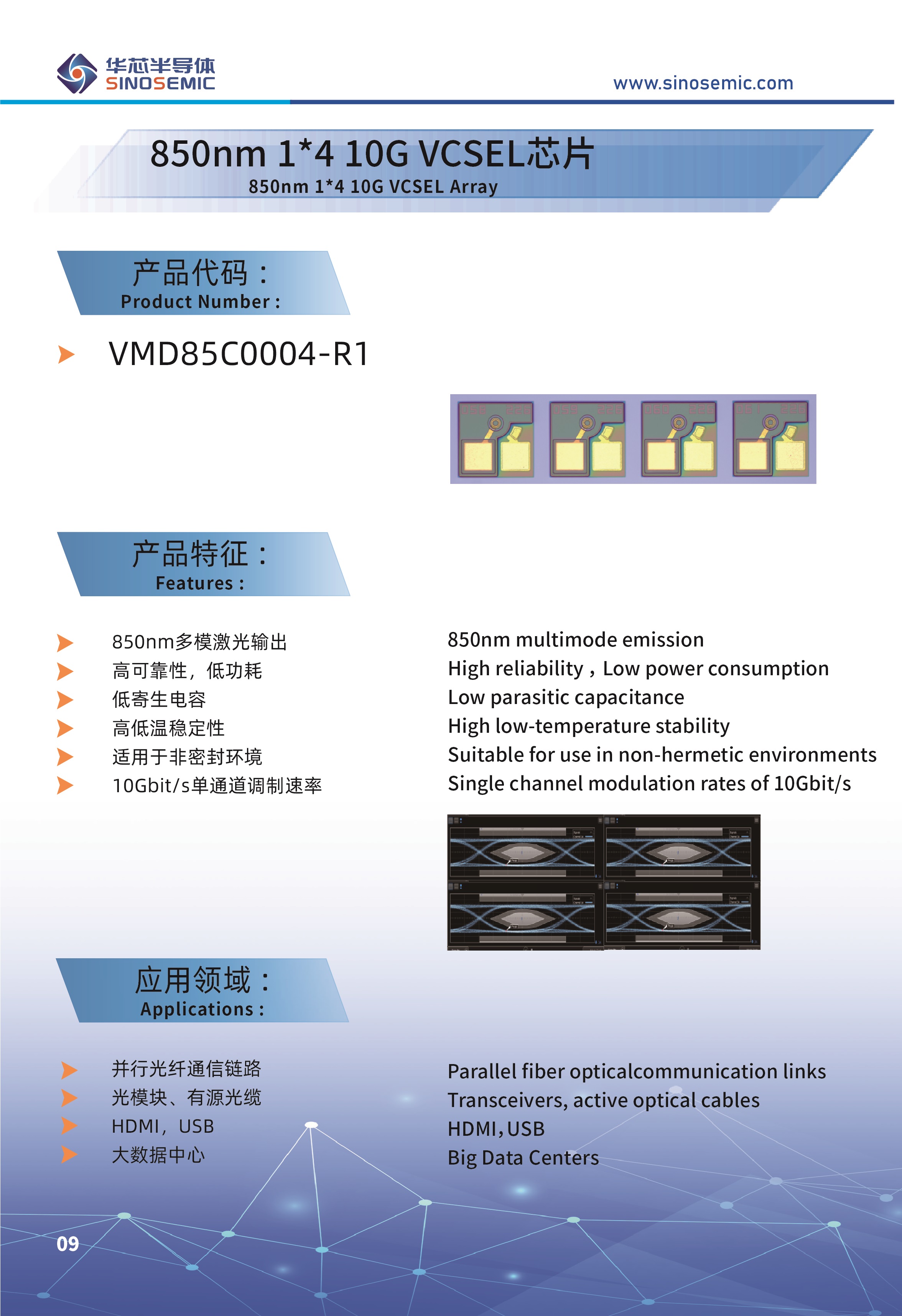 850nm 1*4 10G VCSEL芯片