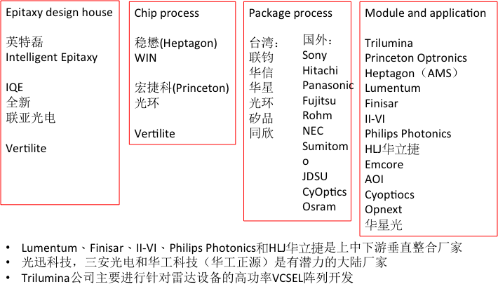 图二 VCSEL的产业链分工示意图